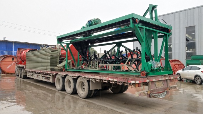 查看 > 20 2020/11由于該豬糞秸稈有機肥料生產(chǎn)線產(chǎn)量較大,因此分為多車裝置運輸。主要的豬糞加工設(shè)備有:大型秸稈粉碎機、履帶式翻堆機、臥式攪拌機、新型三合一造粒機、不同型號的滾筒篩分機以及多個型號的烘干冷卻設(shè)備。滾筒烘干設(shè)備風頭以及風機安置熱風爐以及冷卻設(shè)備多個烘干冷卻設(shè)備履帶式翻堆機以及大型秸稈粉碎機二次烘干設(shè)備滾筒篩分機以及鏟車喂料倉本次豬糞秸稈有機肥料生產(chǎn)線工藝設(shè)計流程為:利用大型秸稈粉碎機將稻草秸稈等粉碎均勻,