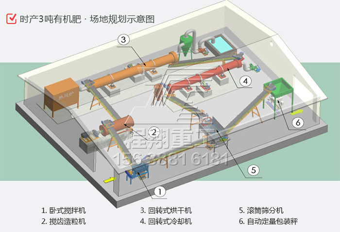 年產(chǎn)3萬噸的牛糞有機肥生產(chǎn)線工藝圖