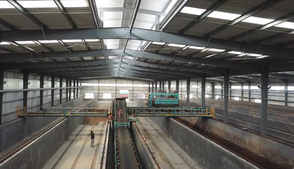 本次牛糞全套有機(jī)肥料設(shè)備生產(chǎn)工藝采用槽式好氧發(fā)酵,利用翻堆槽發(fā)酵既干凈又能最大化的利用有限的場地,增加糞便處理量。由于客戶對于顆粒有機(jī)質(zhì)含量以及NPK有特殊要求,因此我們?yōu)榭蛻魧iT定制了一臺三倉的靜態(tài)配料系統(tǒng)。
