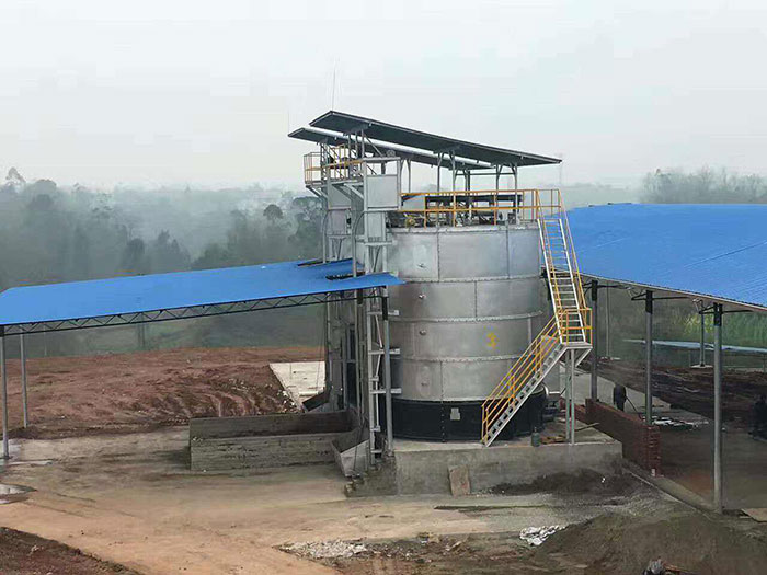 靜態(tài)堆肥常采用露天的靜態(tài)強制通風垛形式,或在密閉的發(fā)酵池、發(fā)酵箱、靜態(tài)發(fā)酵倉內(nèi)進行。一批原料堆積廠條垛或置于發(fā)酵裝置內(nèi)后,不再添加新料和翻倒,直到堆肥腐熟后運出。由于堆肥物料一直處于靜止狀態(tài),導致物料及微生物生長的不均勻性,尤其是對有機質(zhì)含量高于50%的物料,靜態(tài)強制通風較困難,易造成厭氧狀態(tài),使發(fā)酵周期延長,此為其局限性。