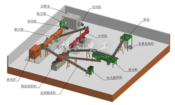 標(biāo)準(zhǔn)的年產(chǎn)1萬噸顆粒有機(jī)肥生產(chǎn)線工藝