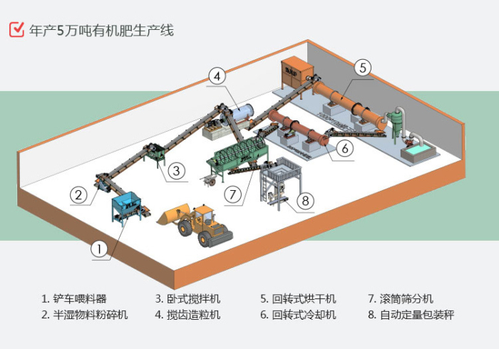 規(guī)?;袡C肥生產(chǎn)線工藝流程示意圖