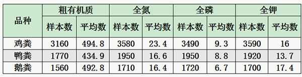 家禽糞便養(yǎng)分含量: